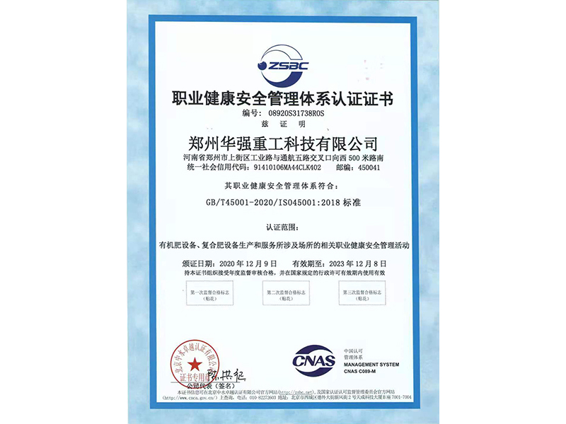 • 職業(yè)健康安全管理體系認(rèn)證證書